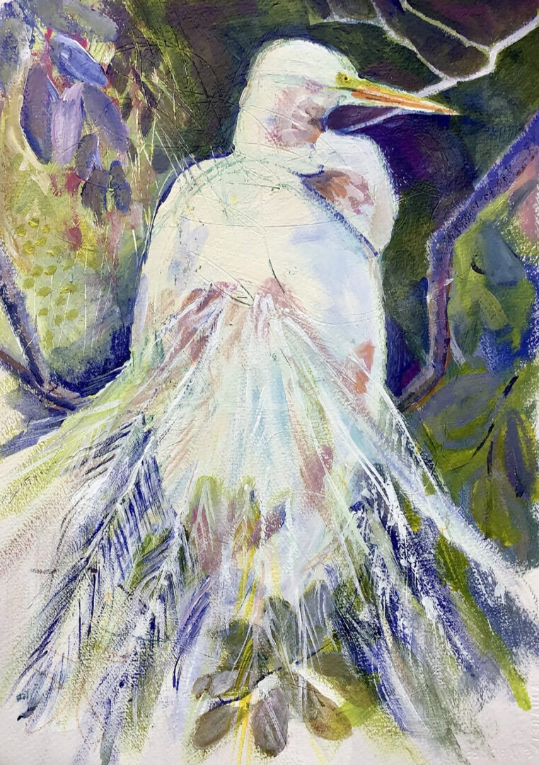 My toolbox now includes acrylics, mixed media, and collage, in addition to watercolor, but my subjects will always be in keeping with my mission statement for my life. Beauty, fun, and a love of nature are all key to a well-lived day for me, and, therefore, reflected in my work.