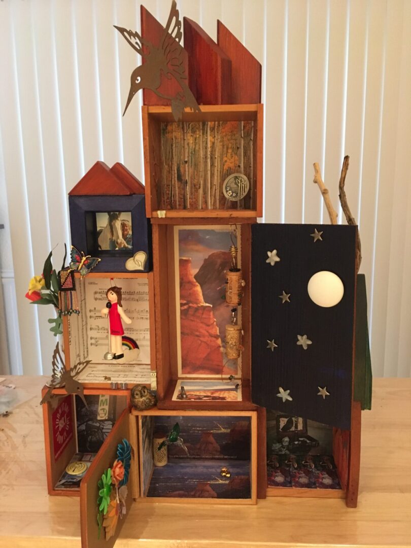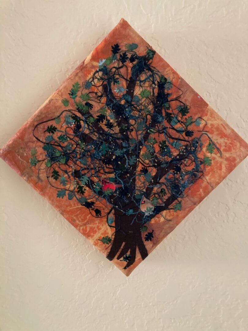 Donna Bergman is a mixed-media collage artist living in Sarasota, FL. She has worked in a multitude of media throughout her life and the experiences gained from working in other media has contributed to her 2- & 3-dimensional mixed-media creations. She is drawn to organic forms and inspired by whimsical subjects. Bergman typically expresses this in her art using bright colors and lots of texture.