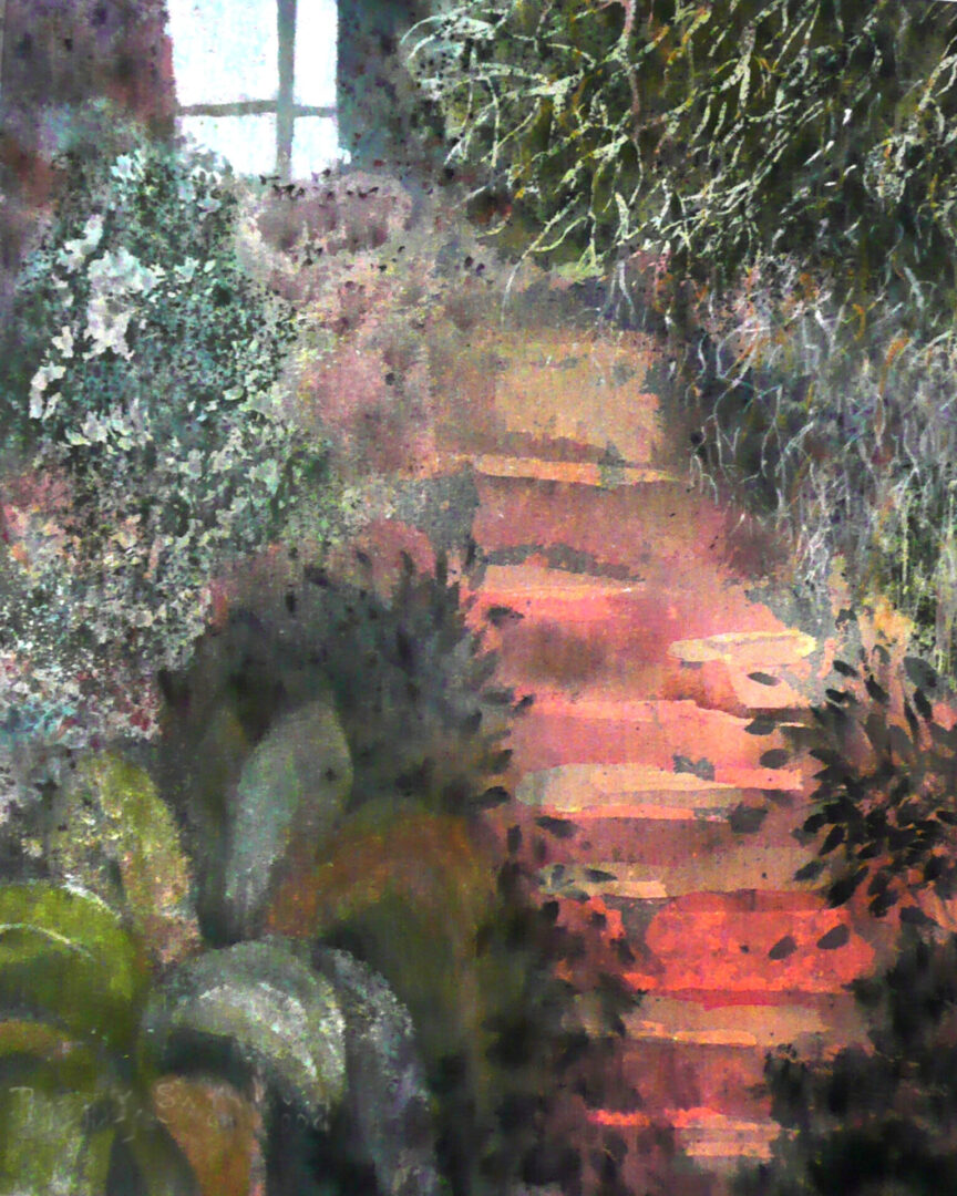 Beverly frequently incorporates a degree of realism into her abstract compositions, enticing the viewer to explore a personal interpretation of her art. Passages of various types are a common theme that she integrates into her work, symbols that reflect a special meaning for the artist as well as further personal associations for observers.