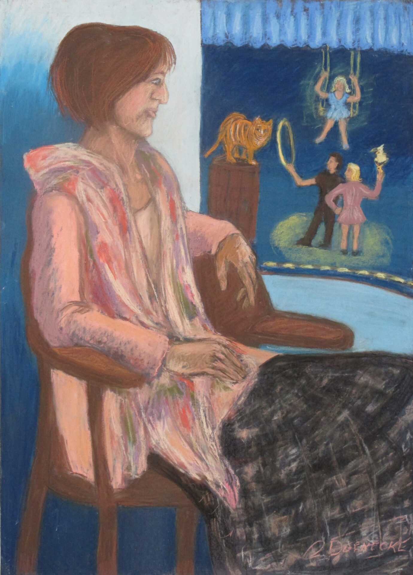 My medium is pastel, and my work is essentially figurative…but I do not just want to paint portraits or figures. My influences come from many places: travel, myth, literature, old movies, and documentaries. Sometimes my paintings evoke moods. Often models or their poses suggest what I do with rest of the painting. Color is an essential part of my creations.