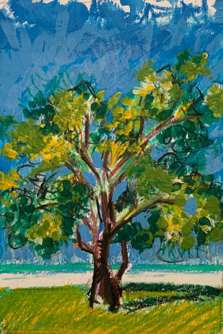 I am fascinated by the play of color, pattern, and light found in nature. I draw my inspiration by photographing landscapes and use my images to interpret the color palette and composition of each piece. I experiment by applying effects and filters to my photo references. These alterations increase the contrast and intensify the colors in my images. I draw and paint my subject matter in a gestural style, using bold color and energetic strokes to capture nature’s essence. By adding whimsy through textured patterns of saturated color, I want to ignite an emotional connection between the artwork and the observer.
