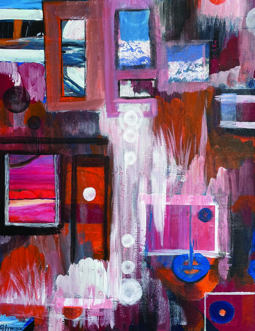 I started painting as I neared retirement the winter before Covid.  I became “addicted” to painting immediately.  I loved familiarizing myself with different mediums by watching many tutorials on YouTube. I painted every day all day during quarantine. I felt adventurous and creative while using pastels, watercolors, and moving on to acrylics and mixed medium.  I still enjoy all these mediums.  I’m inspired by the beauty of nature, my extensive travels, and objects in my home and walks in neighborhoods I’ve lived in.  Painting feels like meditation to me;  Very relaxing and also exhilarating;  Challenging and satisfying; Always a growing process.