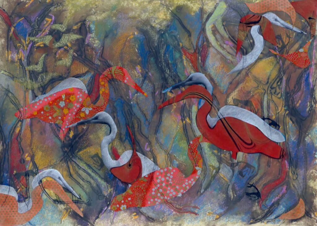 Inspired by the natural world and its human inhabitants – Judy sees them through a somewhat abstract lens. When out in the world, her camera is her sketchbook. In the studio, she finds it exciting to alternate and mix mediums. Judy’s work, be it collage, photography, encaustics, painting or printmaking is almost always layered, both in technique and meaning.