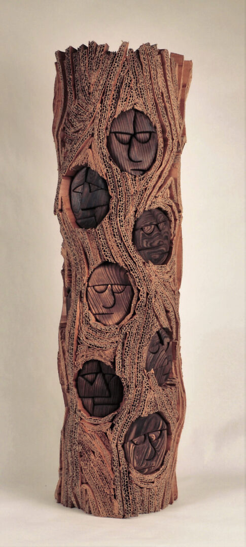 My earliest pieces were made mostly of wood and found objects, but my fascination with the possibilities of corrugated cardboard has since led me to explore paper and cardboard in all their forms and varieties, with a particular focus on discarded packaging and shipping materials.