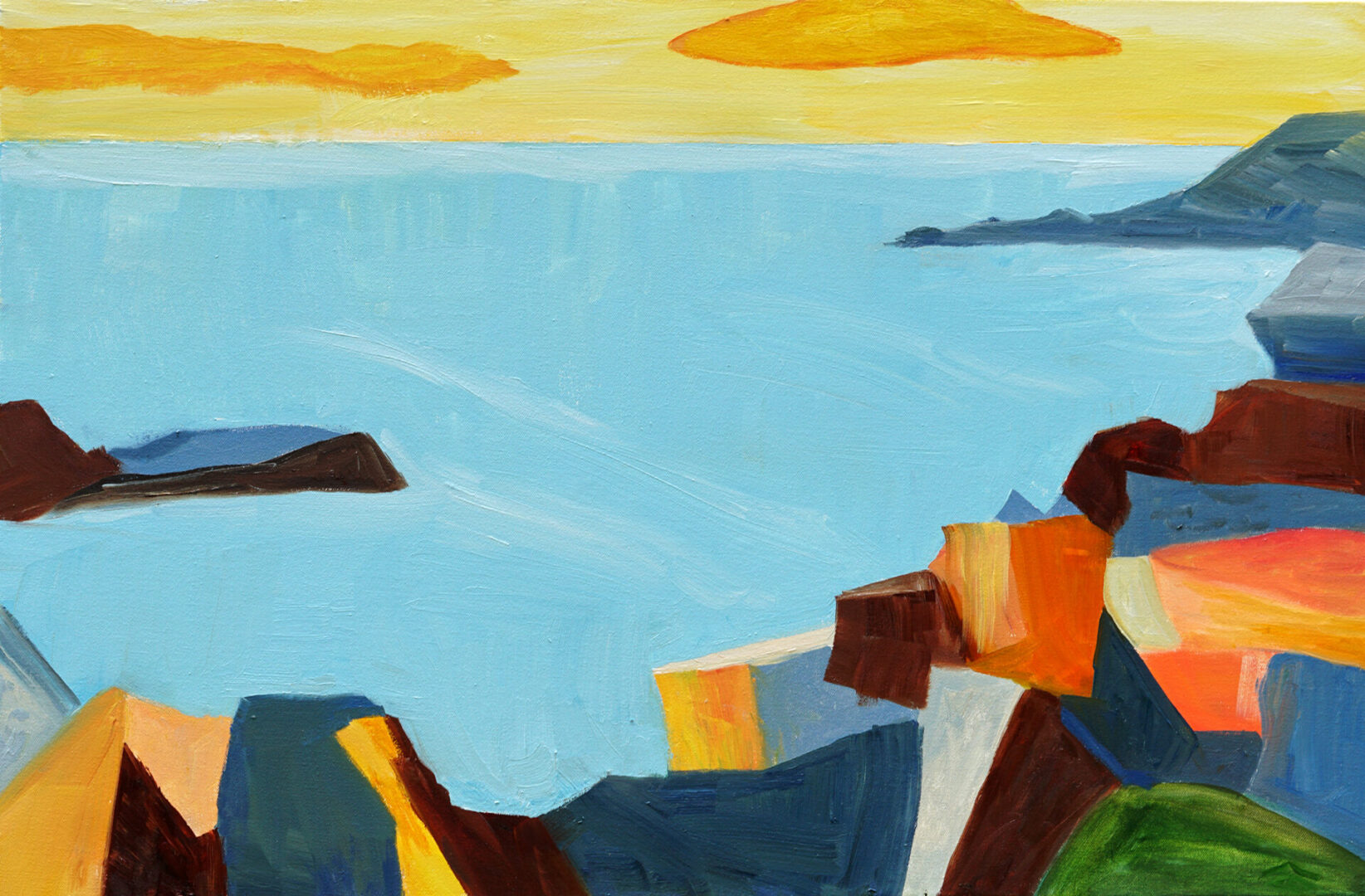 My work reflects my connection to landscape and nature. I’m especially interested in the impact of people on the land, water, plants and animals. I grew up on Long Island and have lived near water most of my life. Water plays a large role in my paintings as do animals. My background in biology and medicine informs my thinking about species interactions. I work in watercolor and oils and I love the process of painting, especially the visceral nature of oil paint.